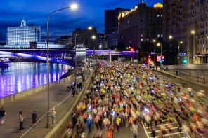 На фото: участница ночного массового забега на 10 км, стартовавшего после захода солнца в 22:00, Москва, Россия. Маршрут был проложен по набережным Москвы и заканчивался на территории олимпийского комплекса «Лужники».