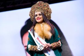 Само слово «кокошник» в первый раз встречается в документах XVII века. Поначалу их носили женщины всех слоев населения, однако после реформ Петра I кокошники остались только в традиционном костюме — крестьянском, мещанском и купеческом. На фото: участница конкурса красоты «Краса России» Лидия Молодцова из Новосибирска на сцене многофункционального концертного комплекса «Роза Холл», Сочи, 20018 год.