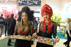 Из головного убора простолюдинок кокошник превратился в роскошные тиары, которые носили принцессы, королевы и императрицы. Пожалуй, это единственный элемент русского костюма, который смог пройти сквозь эпохи и остаться популярным. На фото: участники в кокошниках угощаются сладостями на 32-й Международной выставке продуктов питания и напитков «Продэкспо-2025», Москва, 2025 год.