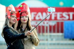 На фото: болельщицы после встречи с футболистами сборной России в фан-зоне на Воробьевых горах во время чемпионата мира по футболу — 2018, Москва. Сборная Россия завершила выступление на ЧМ-2018 после проигрыша в матче со сборной Хорватии в ¼ финала.