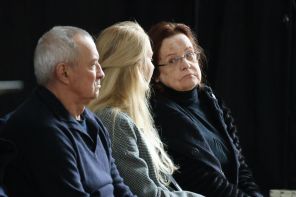 На фото: вдова Юрия Николаева Элеонора Николаева (справа) во время церемонии прощания с телеведущим Юрием Николаевым в похоронном доме «Троекурово». Николаев скончался 4 ноября в возрасте 76 лет.