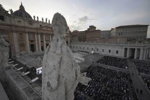 На фото: верующие на площади Святого Петра в Ватикане после объявления о смерти Папы Римского Франциска, апрель, 2025 года.
