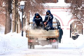На фото: сотрудники коммунальных служб во время уборки на территории музея-заповедника «Коломенское».
