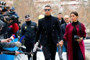 В 2019 году нападающий итальянского футбольного клуба «Ювентус» Криштиану Роналду признал себя виновным по четырем пунктам обвинения в мошенничестве с налогами в Испании. Об этом сообщал портал Football Italia. 33-летний футболист признал себя виновным в зале суда и согласился на двухлетний условный срок. Согласно испанскому законодательству, он должен предстать вновь перед судом, чтобы официально заверить сделку со следствием. Сообщается, что, находясь в Испании и выступая за мадридский «Реал», спортсмен совершил четыре отдельных налоговых преступления в период с 2011 по 2014 год. Роналду был признан виновным в мошенничестве на сумму €14,7 млн. Футболист уже вернул в испанскую казну €13,4 млн. Суд принял решение заключить под стражу футболиста на два года. Однако, согласно испанскому законодательству, так как это является первым правонарушением футболиста и срок составляет менее двух лет и одного дня, то реальный тюремный срок будет заменен на условный. Однако, если Роналду снова нарушит налоговое законодательство Испании, то получит уже тюремный срок. На фото: нападающий ФК «Ювентус» Криштиану Роналду с подругой Джоржиной Родригес у здания суда в Мадриде, Испания.