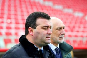 На фото: заместитель председателя правительства Республики Абхазия Тарас Хагба на церемонии прощания с олимпийским чемпионом 1956 года в составе сборной СССР по футболу футболистом Никитой Симоняном на «Лукойл-Арене».