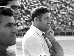 На фото: Никита Симонян — легенда футбола — олимпийский чемпион, лучший бомбардир в истории «Спартака». Родному клубу он отдал два десятка лет. Не только блистательный игрок — талантливый тренер, дважды приводил команду к чемпионскому титулу.
