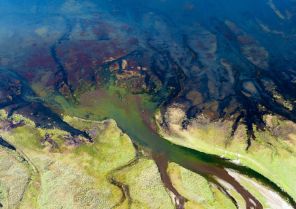 Нефть. В воду ежегодно выбрасываются тысячи тонн маслянистой горючей жидкости. На дне были обнаружены битумные постройки — небольшие нефтяные «вулканы», которые периодически выпускают черные шарики.