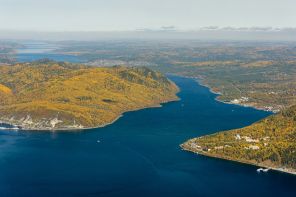 На фото: озеро Байкал. Устье реки Ангара. В Байкал впадает больше 300 крупных рек, мелких речушек и водотоков. Почти половину воды Байкалу приносит река Селенга. А вытекает из озера всего одна река — Ангара.