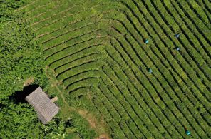 На фото: плантация чая в селе Солох-аул недалеко от Сочи. Старейшая чайная плантация России, основанная в начале XX века И. А. Кошмановым. Здесь впервые в стране начали выращивать чай в промышленных масштабах.