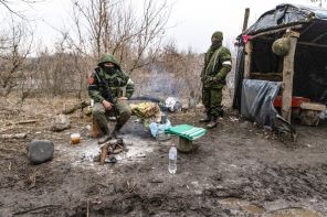 На фото: военнослужащие Народной милиции ЛНР на территории села Трехизбенка, Луганская область.