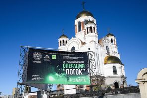 На фото: торжественное открытие выставки «Операция „Поток“» в Екатеринбурге, 25 марта 2025 года. Рядом с Храмом-на-Крови была установлена ​​копия трубы, по которой военные проникали в Суджу.