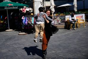 Министр обороны Израиля Исраэль Кац 28-го числа заявил, что «мы нанесли превентивный удар по Ирану с целью устранения угроз Израилю». Израиль ввел чрезвычайное положение по всей стране и перешел в режим военного времени. На фото: женщина с ребенком бежит в укрытие после срабатывания сигнала тревоги о начале израильской атаки на Иран, Тель-Авив, Израиль.
