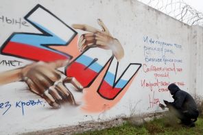 На фото: художник работает над муралом на стене разрушенного металлургического комбината имени Ильича «Азовсталь» в Мариуполе, ДНР, Россия. Город был взят под контроль военнослужащими РФ в апреле 2022 года в ходе специальной военной операции, при этом часть украинских военнослужащих оказалась заблокирована на «Азовстали». 20 мая Минобороны РФ сообщило о сдаче в плен почти 2,5 тыс. остававшихся на заводе военнослужащих ВСУ. Донецкая Народная Республика вошла в состав России по итогам референдума, который проходил 23−27 сентября 2022 года.