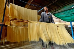 На фото: работник готовит традиционную лапшу с вермишелью, любимую во время священного для мусульман месяца поста Рамадан, на фабрике в Карачи, Пакистан.
