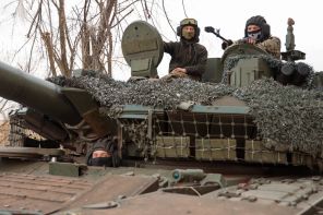На фото: бойцы ЧВК «Вагнер» в танке Т-90МС на освобожденной части города Артемовск/Бахмут.