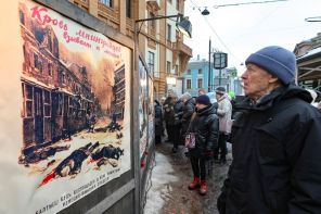 На фото: инсталляция на Манежной площади в Санкт-Петербурге, где представлен интерактивный проект «Живые улицы», посвященный 80-й годовщине полного освобождения Ленинграда от фашистской блокады в годы Великой Отечественной войны.