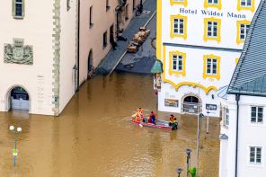 На фото: улицы старого города Баварии, Германия, затопленные Дунаем, июнь 2024 года.