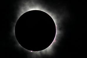 На фото: Луна закрывает Солнце во время полного солнечного затмения, вид из Форт-Уэрта, штат Техас, апрель 2024 года.