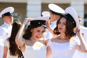 На фото: участницы последнего звонка выпускников филиала Нахимовского военно-морского училища (Севастопольское президентское кадетское училище), Россия.