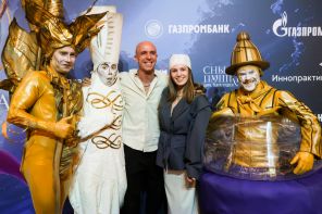 На фото: артист цирка Кирилл Капустин (в центре) во время премьеры театрализованного циркового шоу «Сны Пушкина» в Универсальном спортивном зале «Дружба», Москва, Россия.