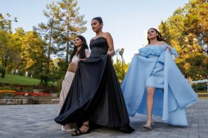 На фото: выпускницы на общегородском выпускном в Приморском парке, Сочи, Краснодарский край, Россия.