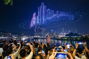 На фото: световое шоу с участием 11 787 дронов. Шоу в Чунцине побило мировой рекорд по количеству дронов, одновременно участвующих в световом шоу, Чунцин, Китай. Достижение было зафиксировано официальным представителем Книги рекордов Гиннесса.