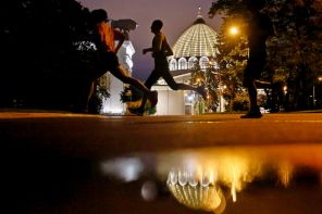 На фото: участники ночного забега «ЗОбег-2025» («Здоровое Отечество — бег») на ВДНХ, Москва, Россия.