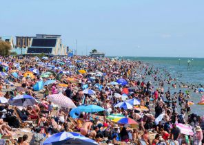 На фото: горожане наслаждаются теплой погодой на пляже Джубили в Саутенде, Великобритания.