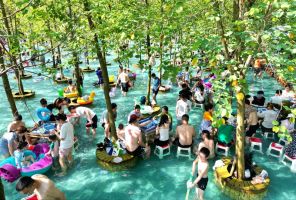 На фото: посетители аквапарка во время игры в маджонг в жаркую погоду, провинция Сычуань, Китай.