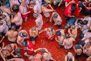 Часовое мероприятие превращает город в яркое красное зрелище, привлекая до 22 000 участников. Гости приезжают со всего мира, платя 15 евро за вход, чтобы попасть в город, где здания укрыты брезентом, чтобы защититься от надвигающегося потопа. «Когда проходит фестиваль, площадь превращается в размытое пятно из помидоров», — вспоминал Адриан Колумб из Ирландии, посещавший праздник. «Это было потрясающе».