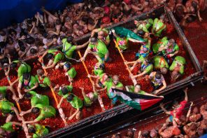 Часовое мероприятие превращает город в яркое красное зрелище, привлекая до 22 000 участников. Гости приезжают со всего мира, платя 15 евро за вход, чтобы попасть в город, где здания укрыты брезентом, чтобы защититься от надвигающегося потопа. «Когда проходит фестиваль, площадь превращается в размытое пятно из помидоров», — вспоминал Адриан Колумб из Ирландии, посещавший праздник. «Это было потрясающе».