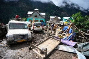 На фото: домашние вещи разбросаны рядом со зданиями, пострадавшими от наводнений в деревне Чосити, округ Киштвар, контролируемый Индией Кашмиро. По меньшей мере 60 человек погибли, более 100 получили ранения.