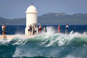 На фото: высокие волны, вызванные сильным ветром в Задаре, Хорватия.
