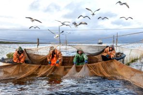 На фото: рыбаки во время ловли ряпушки в реке Енисей около полуострова Таймыр, Красноярский край, Россия.