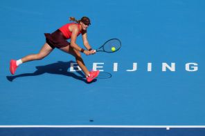 На фото: российская теннисистка Мирра Андреева в матче третьего круга турнира China Open против Джессики Бузас Манейро из Испании. Пекин, Китай. Теннисный турнир China Open в Пекине, 3-й круг: Мирра Андреева (Россия) — Джессика Бузас Манейро (Испания) — 6:4, 6:1.