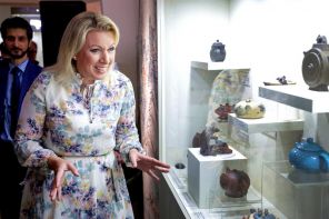 На фото: официальный представитель МИД РФ Мария Захарова представила в Музее Востока собственную коллекцию китайских чайников и поделилась семейными историями, связанными с собранными находками. Уникальное собрание дипломата стало весомой составляющей экспозиции «Магия пурпурной глины». Выставка раскрывает феномен китайской керамики цзыша — многовекового культурного наследия, сочетающего ремесло, философию и искусство. Особое место в рассказе дипломата заняла семейная история, связанная с одним из любимых чайников ее бабушки. «Этот чайник объединял нас всех — бабушку, родителей, меня и наших друзей. Он собиратель истории, даже несмотря на то, что носик чайника рассыпался, когда бабушки не стало, все равно он стал особенным предметом в нашей жизни. Мы вспоминаем ее, когда видим этот предмет нашего чаепития. Вот в этом и есть магия [объединения]», — поделилась дипломат в беседе с журналистами. Выставка «Магия пурпурной глины: Исинская керамика цзыша» проходит с 25 сентября по 9 ноября. Она займет два этажа флигеля главного здания Музея Востока.