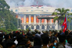 На фото: многотысячные демонстрации протеста прошли в Катманду после кратковременного запрета правительством социальных сетей, что повлекло за собой полицейские репрессии. Протесты обострились, вызвав нападения на правительственные здания. По данным Министерства здравоохранения, общее число погибших в результате беспорядков достигло 31, а 633 человека получили ранения.