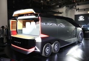 На фото: люксовый бренд Lexus, принадлежащий японскому автопроизводителю Toyota Motor, представляет концептуальную модель шестиколесного минивэна Lexus LS Concept.