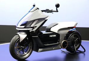 На фото: японский автопроизводитель Honda Motor представляет концепт-модель электромотоцикла EV Urban Concept.