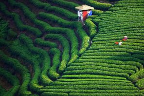 На фото: фермеры на чайной плантации во время сбора урожая чая, Хэчжоу, Китай.