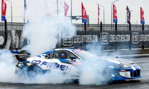 На фото: участник соревнований кубка России по дрифту «Суперфинал RDS» Денис Мигаль во время парных заездов на территории стадиона «Ростов Арена», Ростов-на-Дону, Россия.