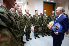 На фото: президент РФ Владимир Путин во время посещения Центрального военного клинического госпиталя имени П. В. Мандрыка Министерства обороны РФ.