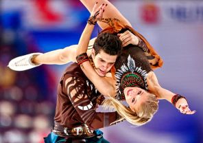 На фото: Софья Леонтьева и Даниил Горелкин во время выступления. Первый этап Гран-при по фигурному катанию. Танцы на льду. Произвольный танец. Стадион «Арена Металлург». Магнитогорск, Челябинская область, Россия.