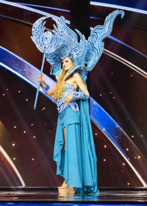 В преддверии финала участницы представили свои родные страны на конкурсе национальных костюмов, украшенных блёстками, перьями и смелыми прозрачными ансамблями. Нашу страну представляла обладательница титула «Мисс Россия — 2025» Анастасия Венза из Московской области.