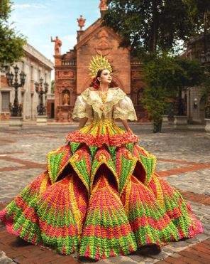 Презентация напоминала книгу сказок, где каждая страница сверкала, развевалась и искрилась. Латиноамериканки превратили подиум в яркий карнавал мифов, культуры и чистой магии театрального представления. В этом году образы сочетали фэнтези с фольклором, воплощая многовековое наследие в платьях, настолько сложных, что на их пошив уходили месяцы. Национальные костюмы Латинской Америки всегда были зрелищными, но 2025 год взялся за эту задачу и превратил их в полноценную кинематографическую вселенную. На сцене можно было увидеть королев красавиц, окутанных огромными перьями, в мерцающих корсажах, архитектурных головных уборах и юбках, которые двигались, словно парящие фрески.