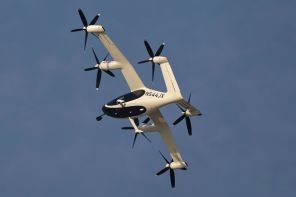 На фото: воздушное такси N544JX компании Joby Aviation во время авиашоу на международной аэрокосмической выставке Dubai Airshow 2025.