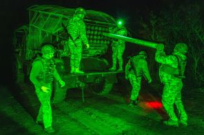 На фото: военнослужащие артиллерийского подразделения ВДВ в составе группировки войск «Днепр» во время подготовки РСЗО «Град» к боевой работе в зоне специальной военной операции, Запорожская область, Россия.