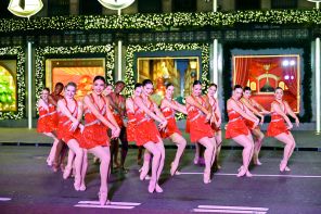 На фото: группа Radio City Rockettes выступает на праздничном световом шоу и открытии рождественских витрин магазина Saks Fifth Avenue в Нью-Йорке, США.