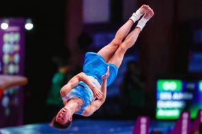 На фото: Арсений Духно (Россия). Чемпионат мира по спортивной гимнастике среди юниоров. Мужчины. Вольные упражнения. Финал. Манила, Филиппины.