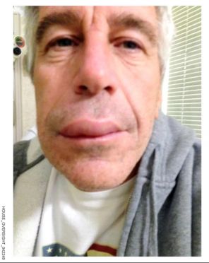 На фото: Эпштейн, с судя по всему, опухшей губой.